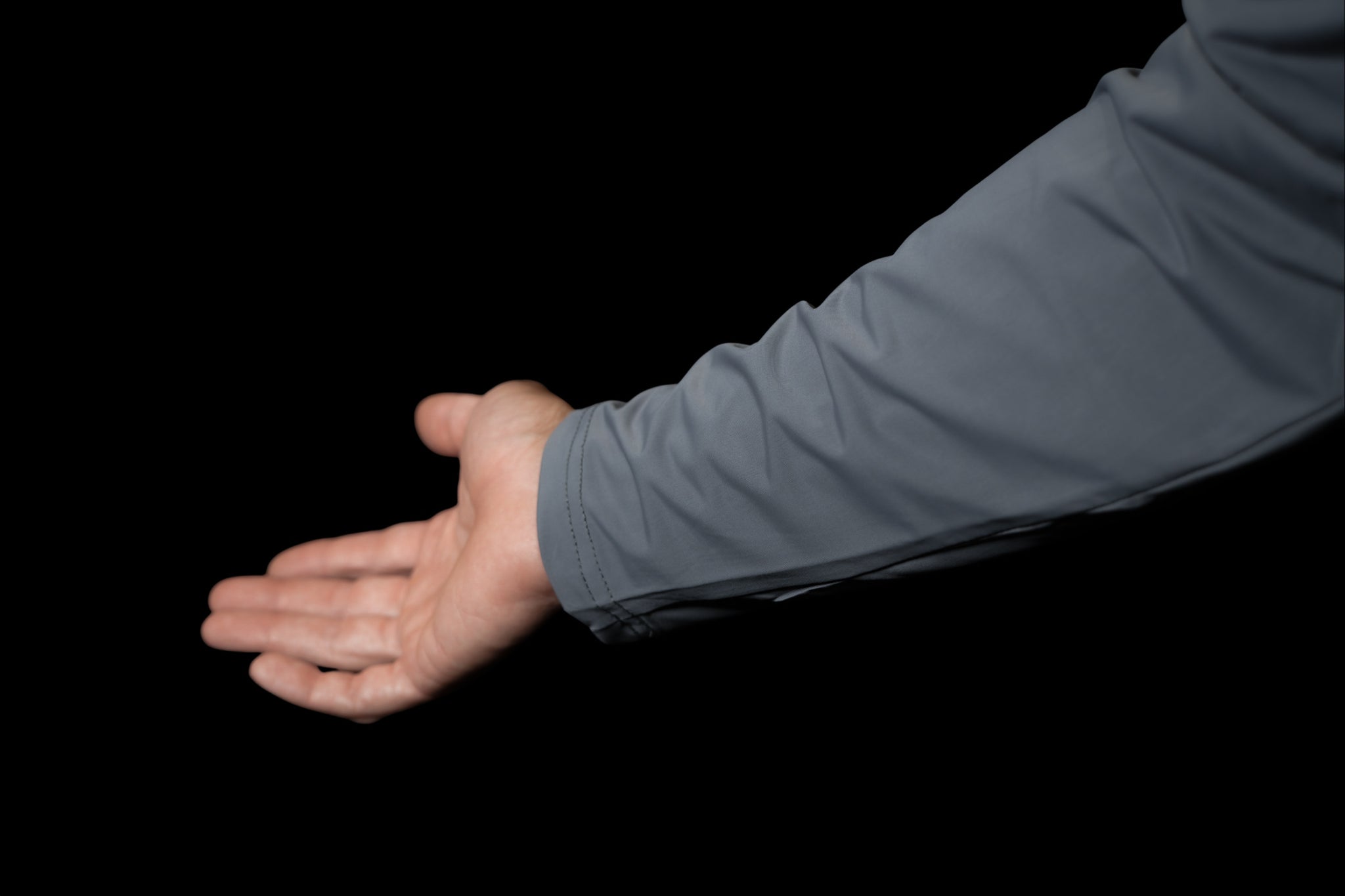 We removed the traditional collar and added a hood for better coverage on long days, and to achieve a clean, fitted sleeve, we used the same hood material for the sleeve construction.